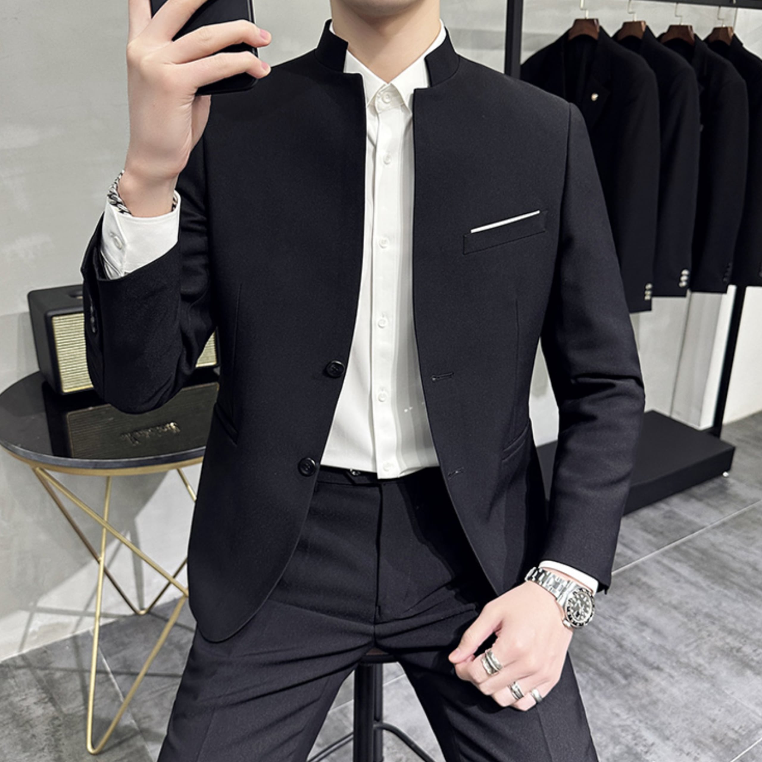 スタンドカラーテーラードジャケットandパンツスーツ(2color) M0696