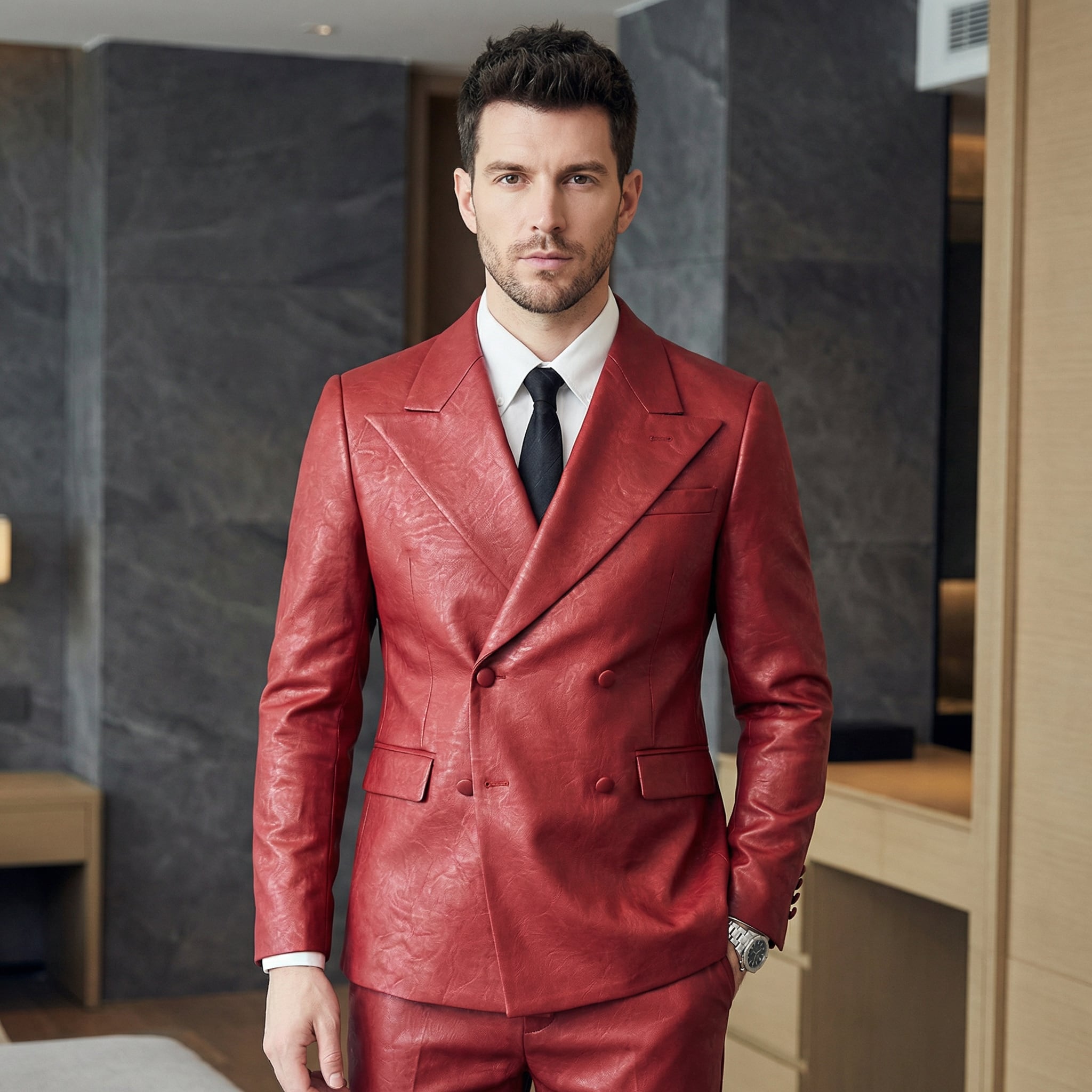 ダブルブレストフェイクレザースーツ(3color) M0699