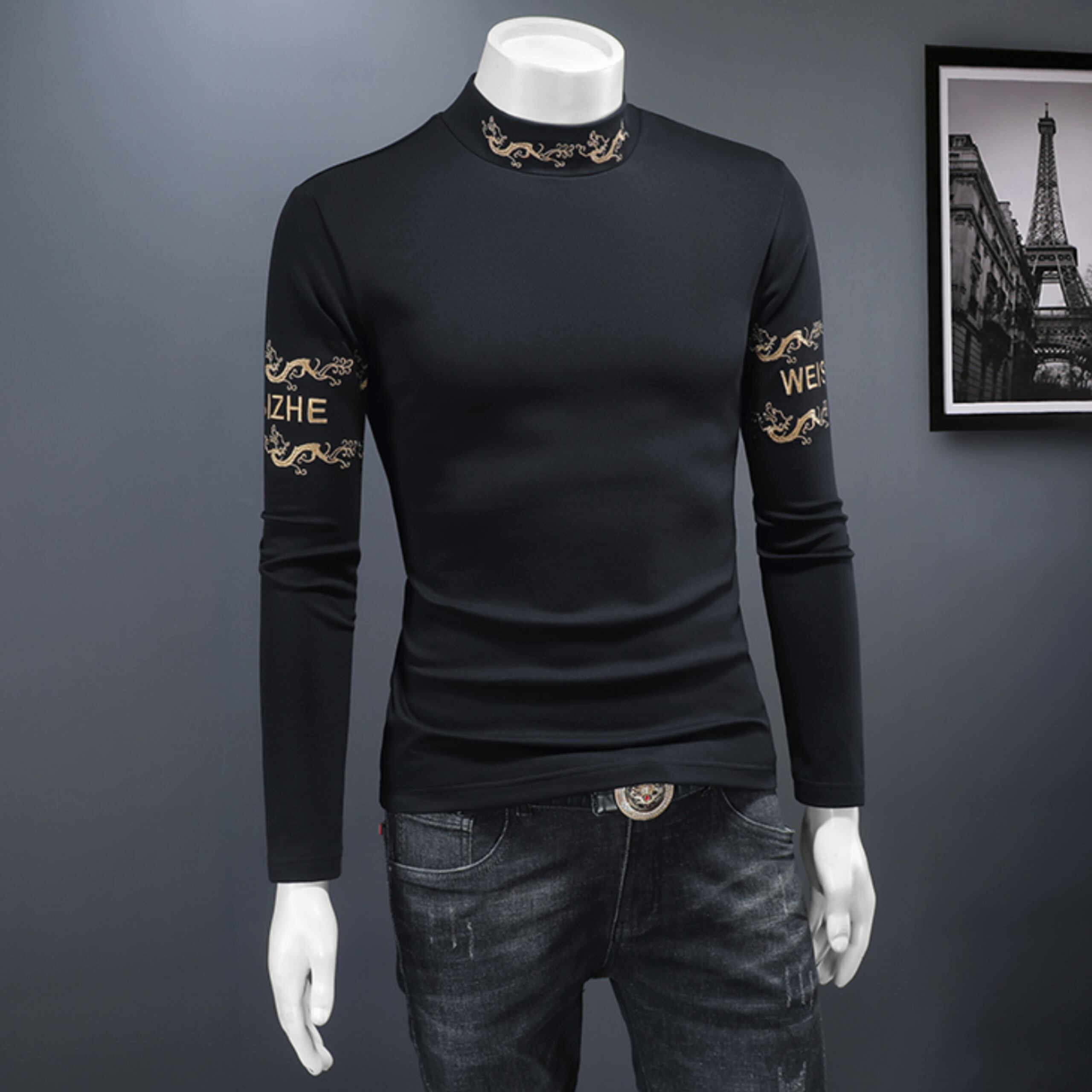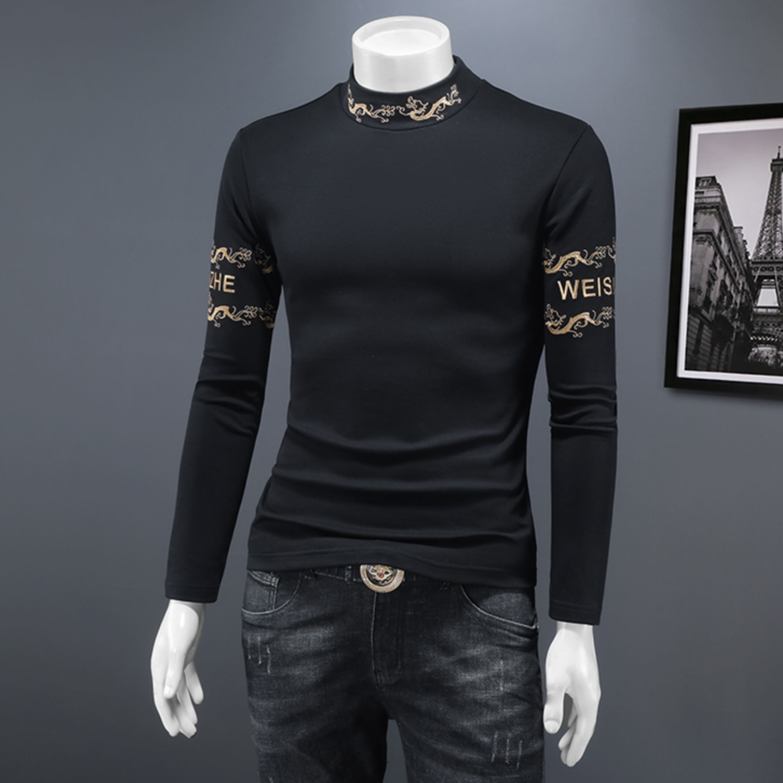 エンブレムデザインスリムフィットシャツ M0757
