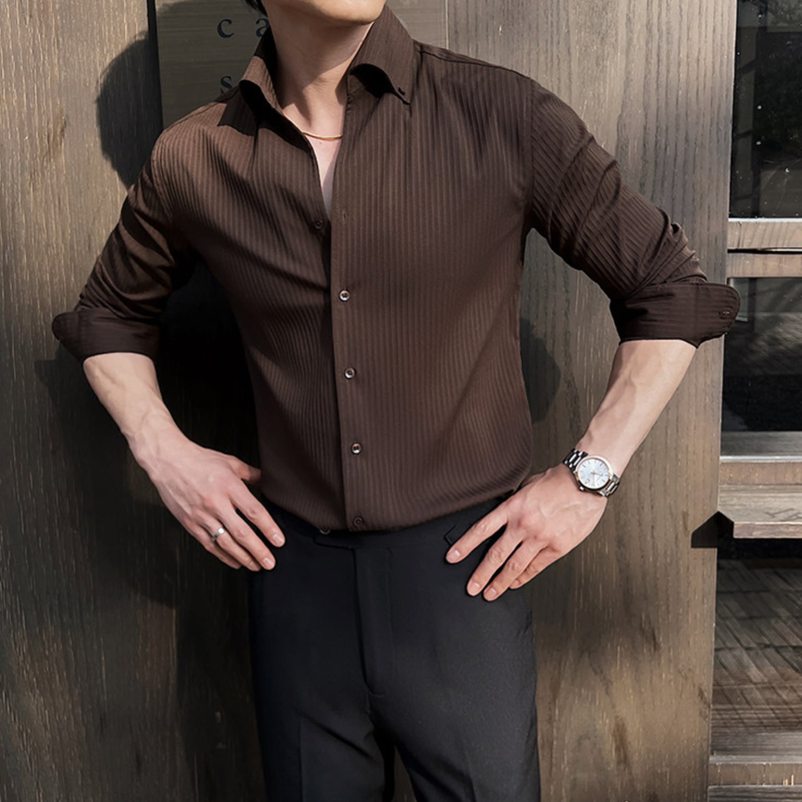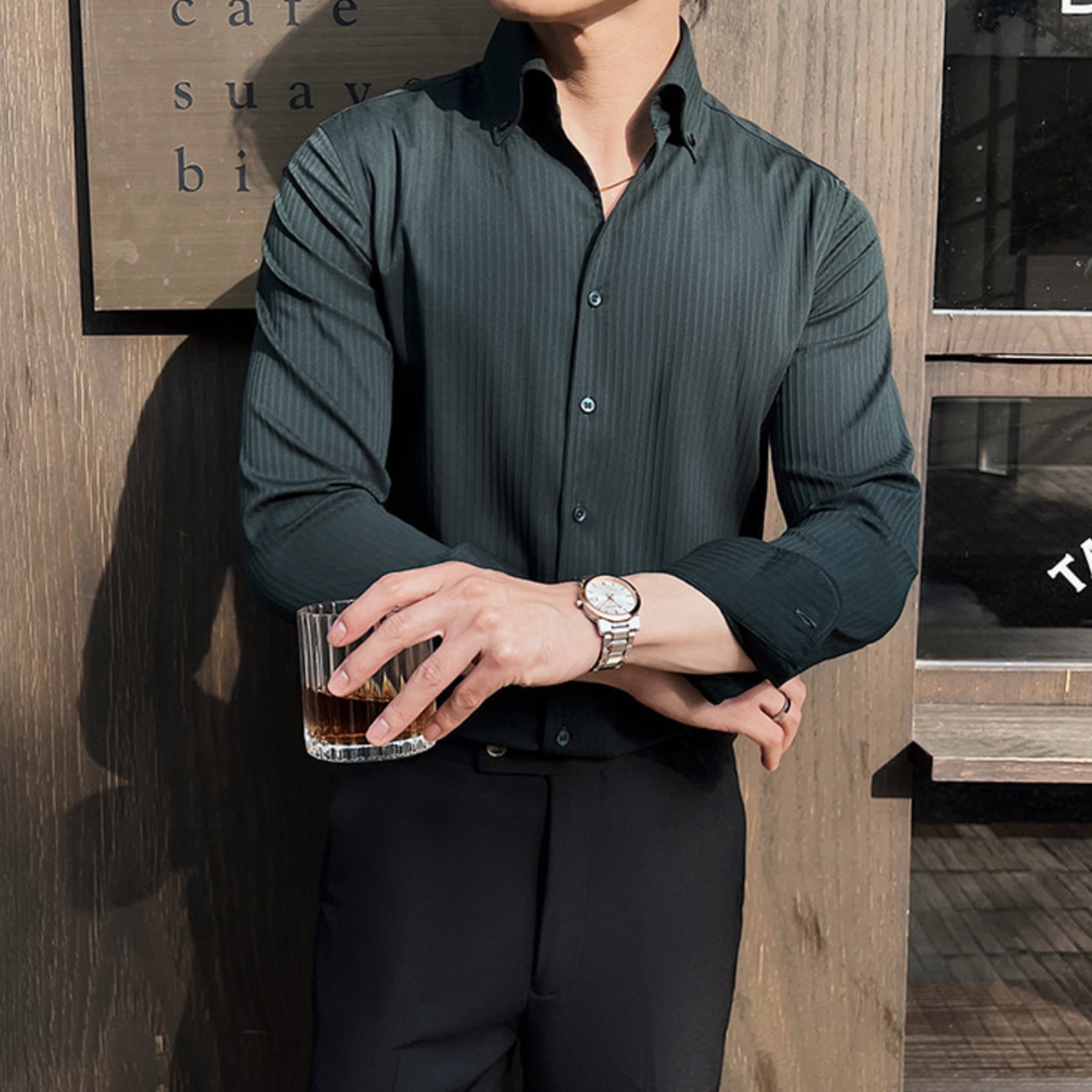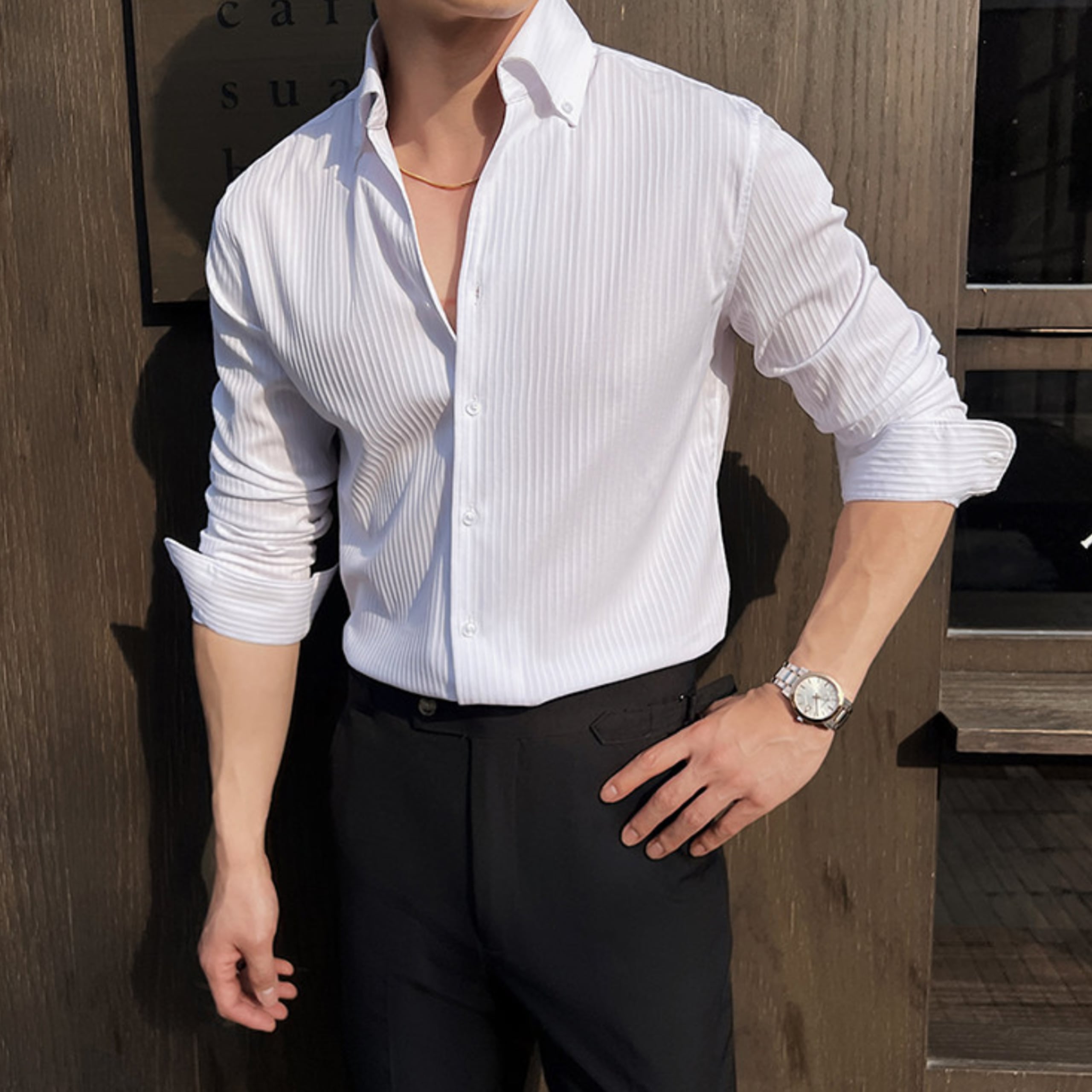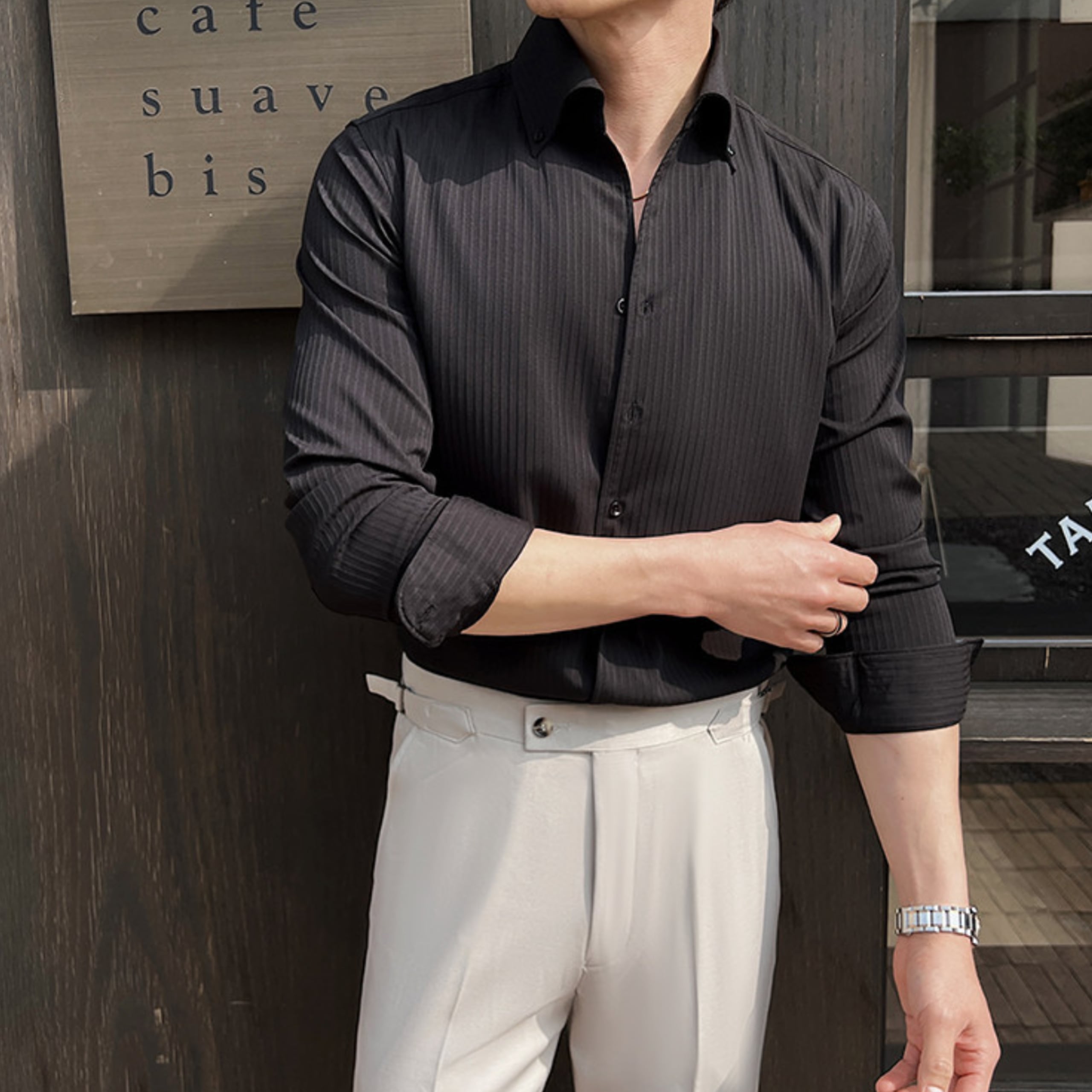 一枚で洗練された印象を与える大人のドレスシャツ。