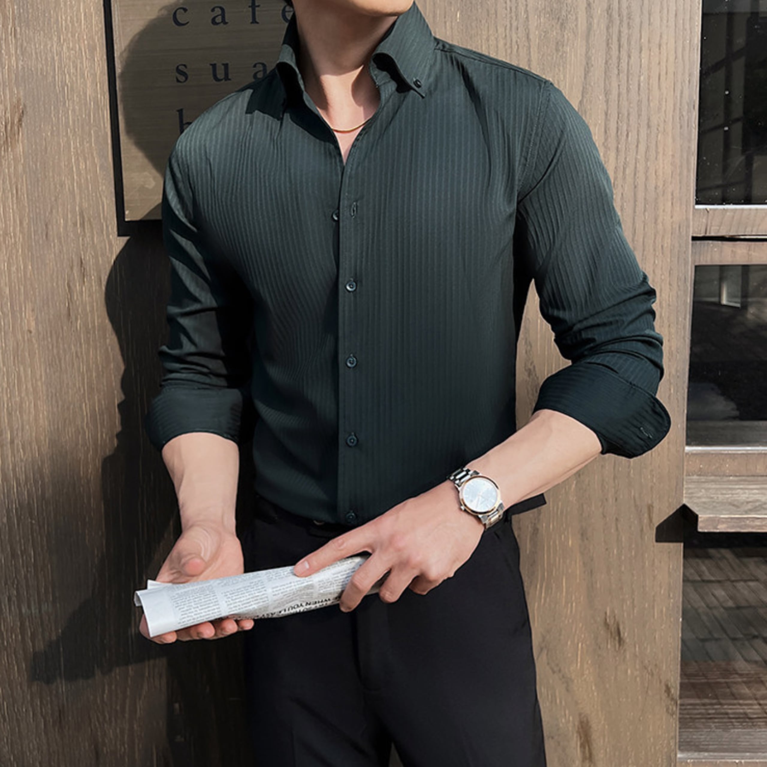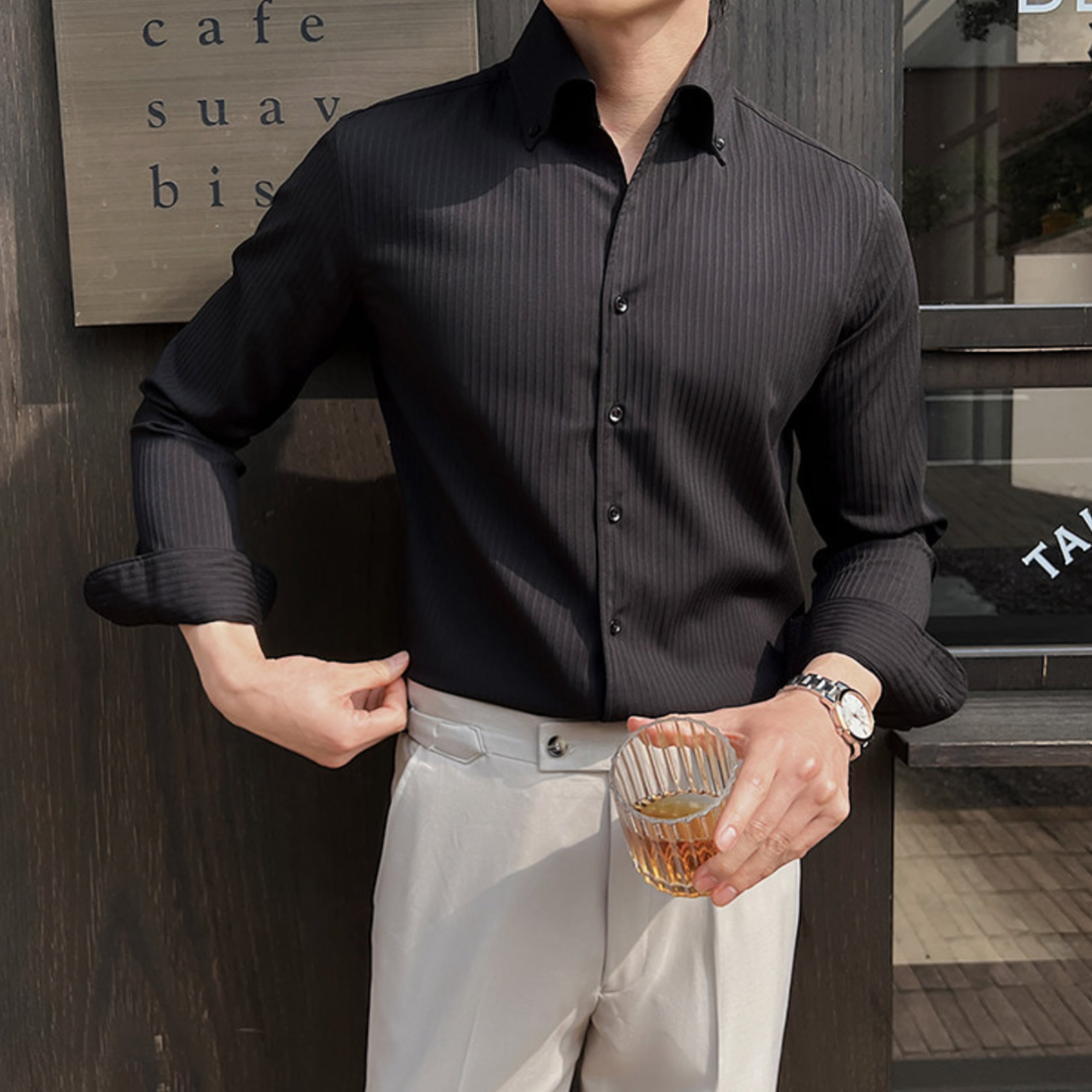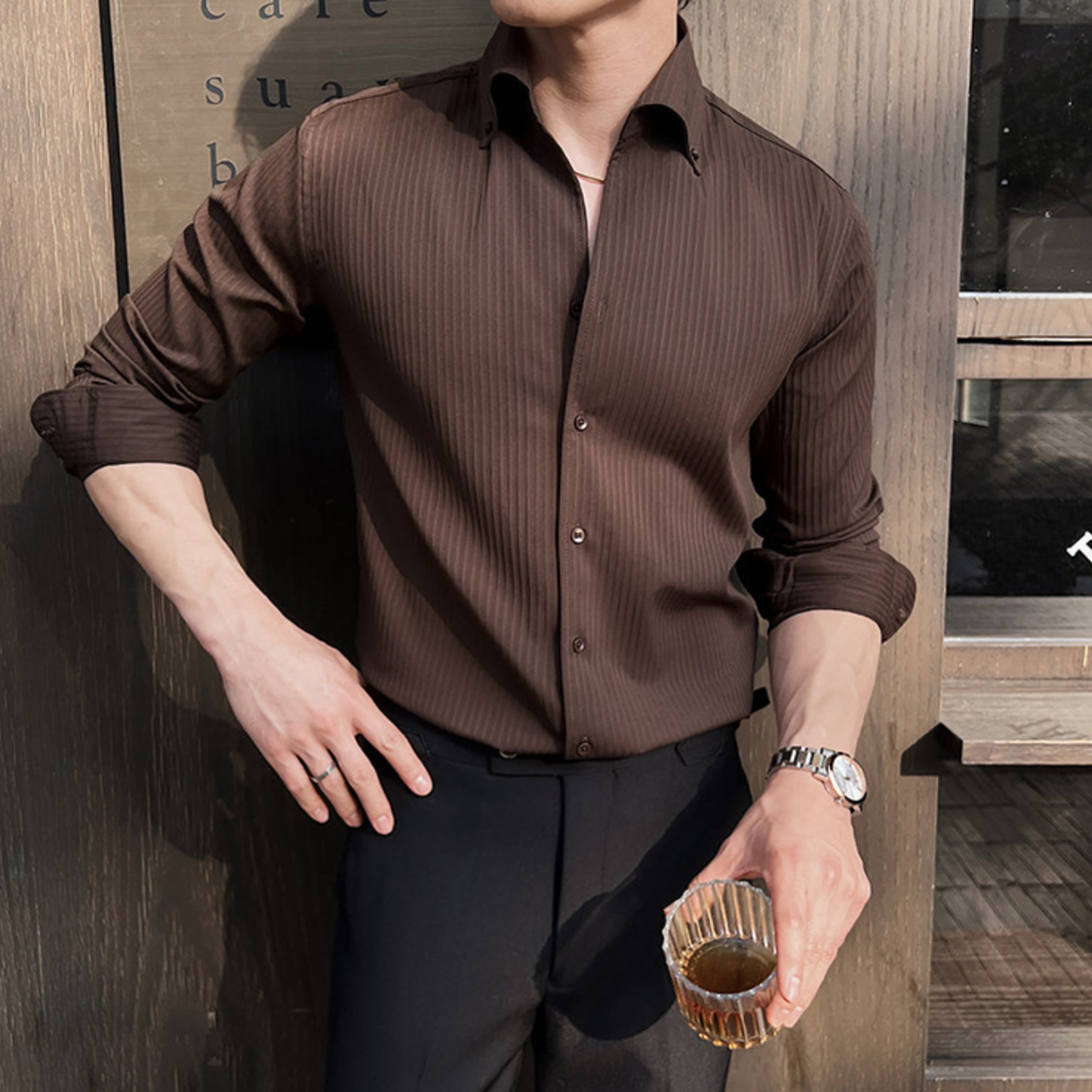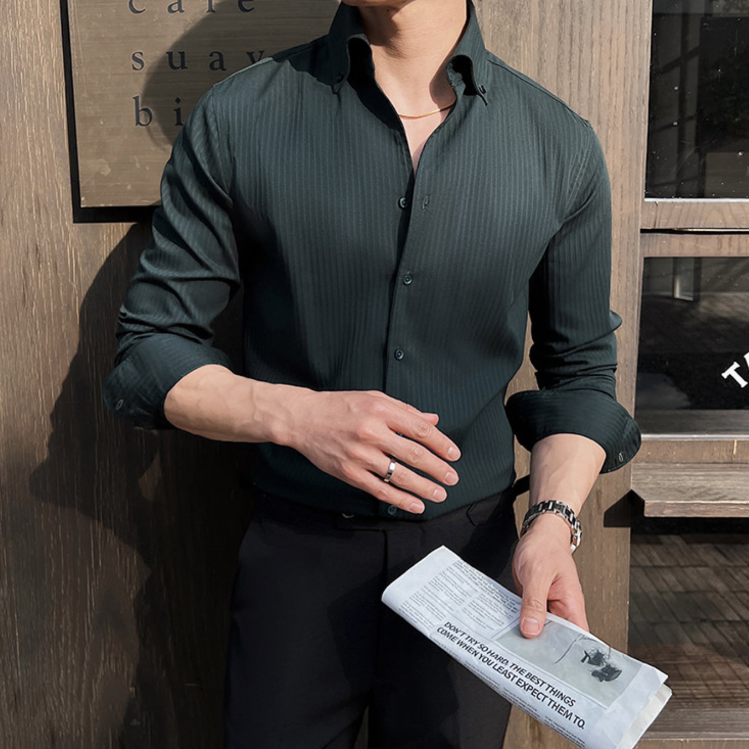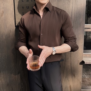 一枚で洗練された印象を与える大人のドレスシャツ。