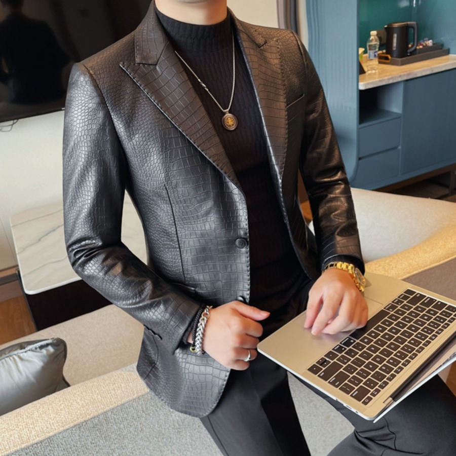 ノーネクタイでも様になるデザインで、