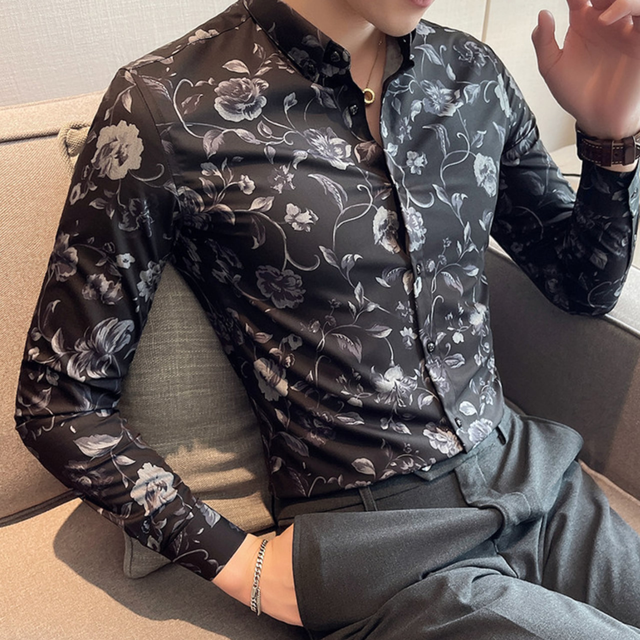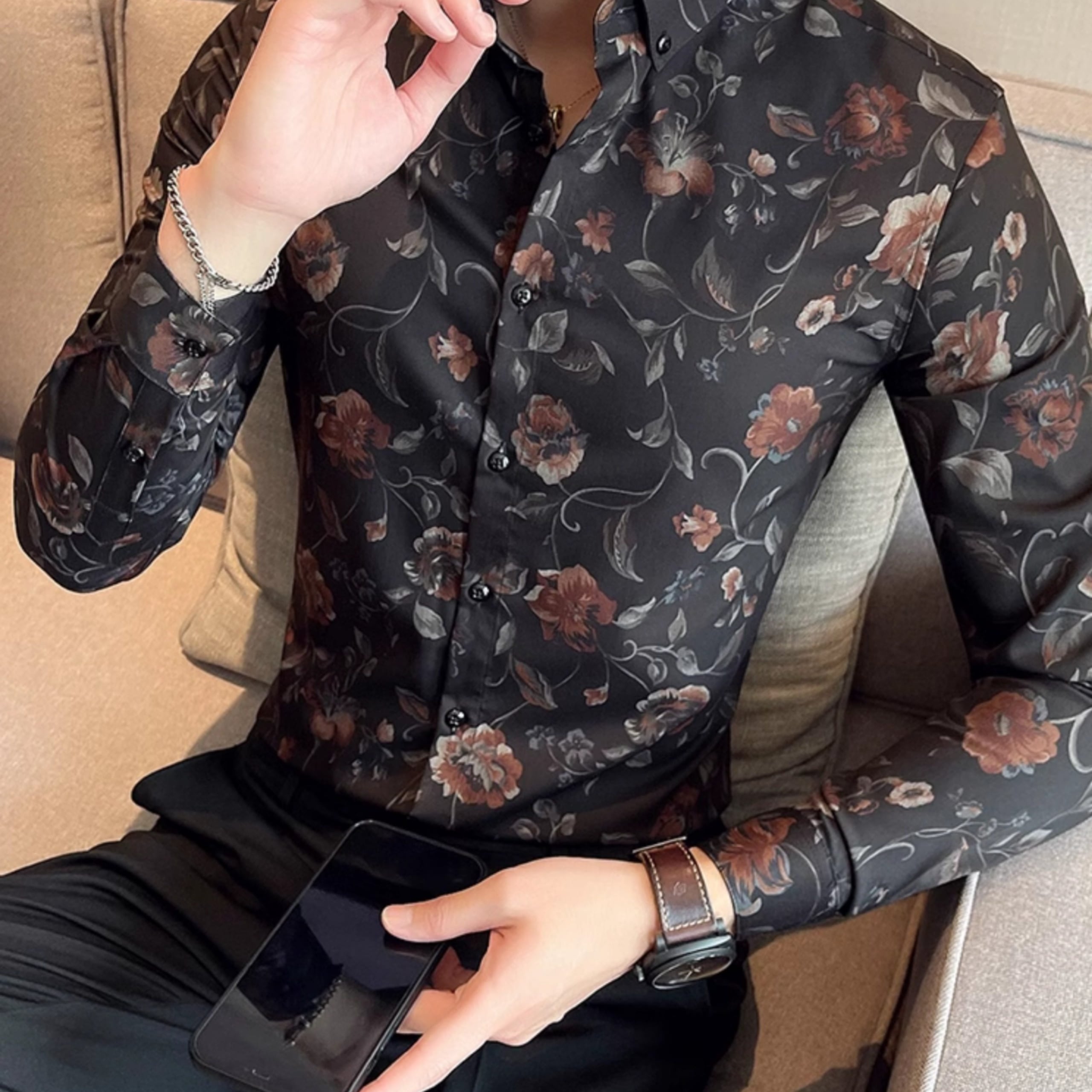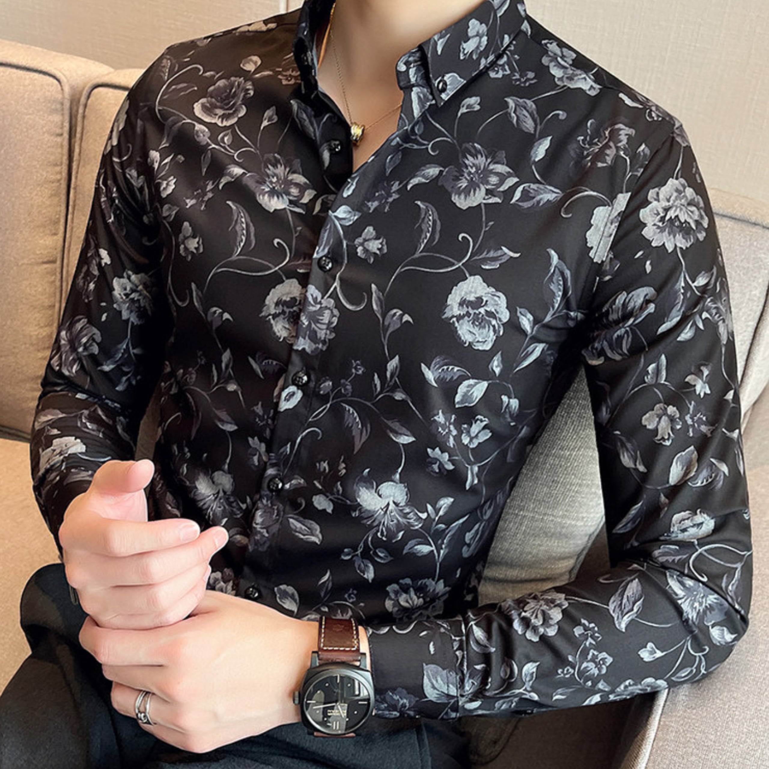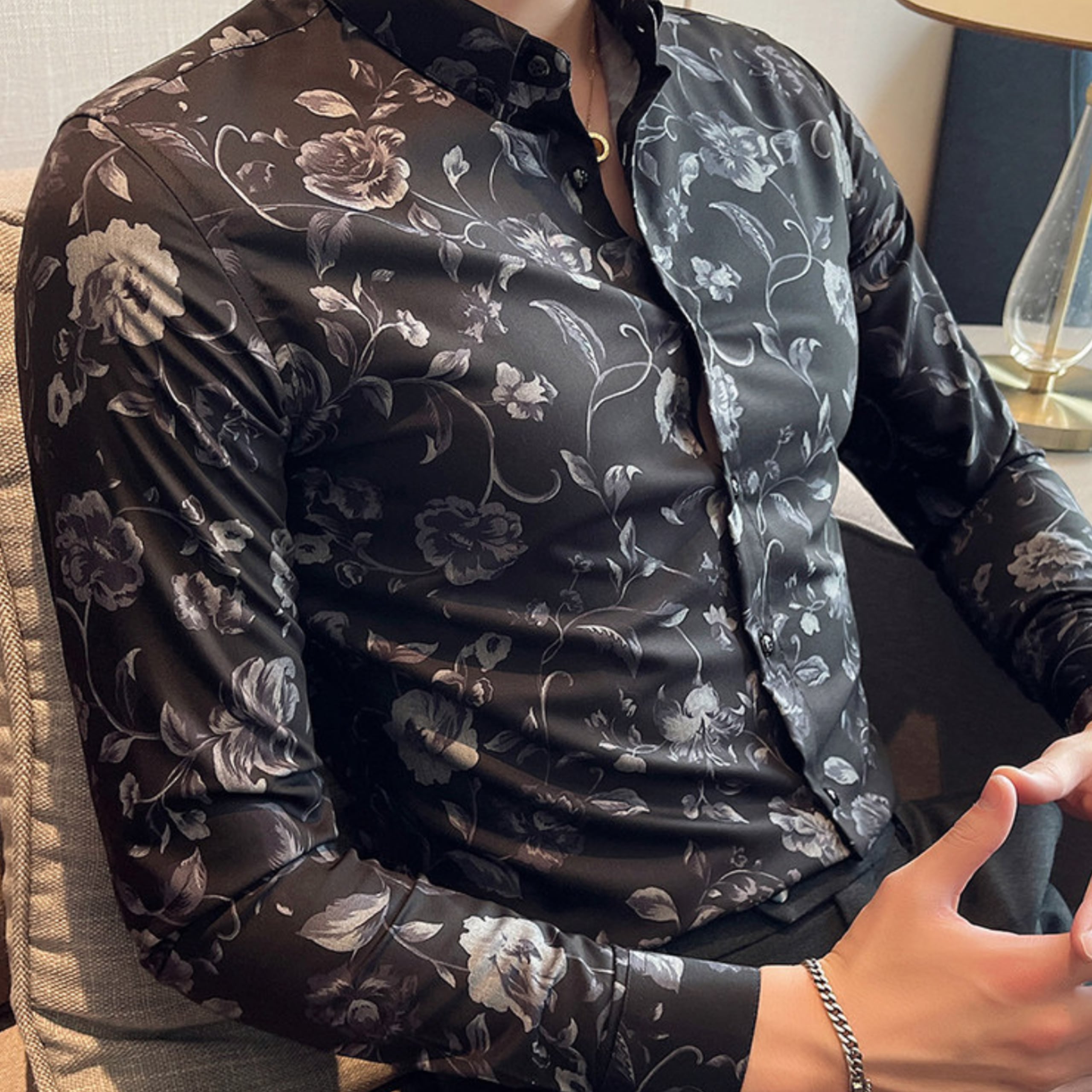 シックなフラワーパターンが印象的な、