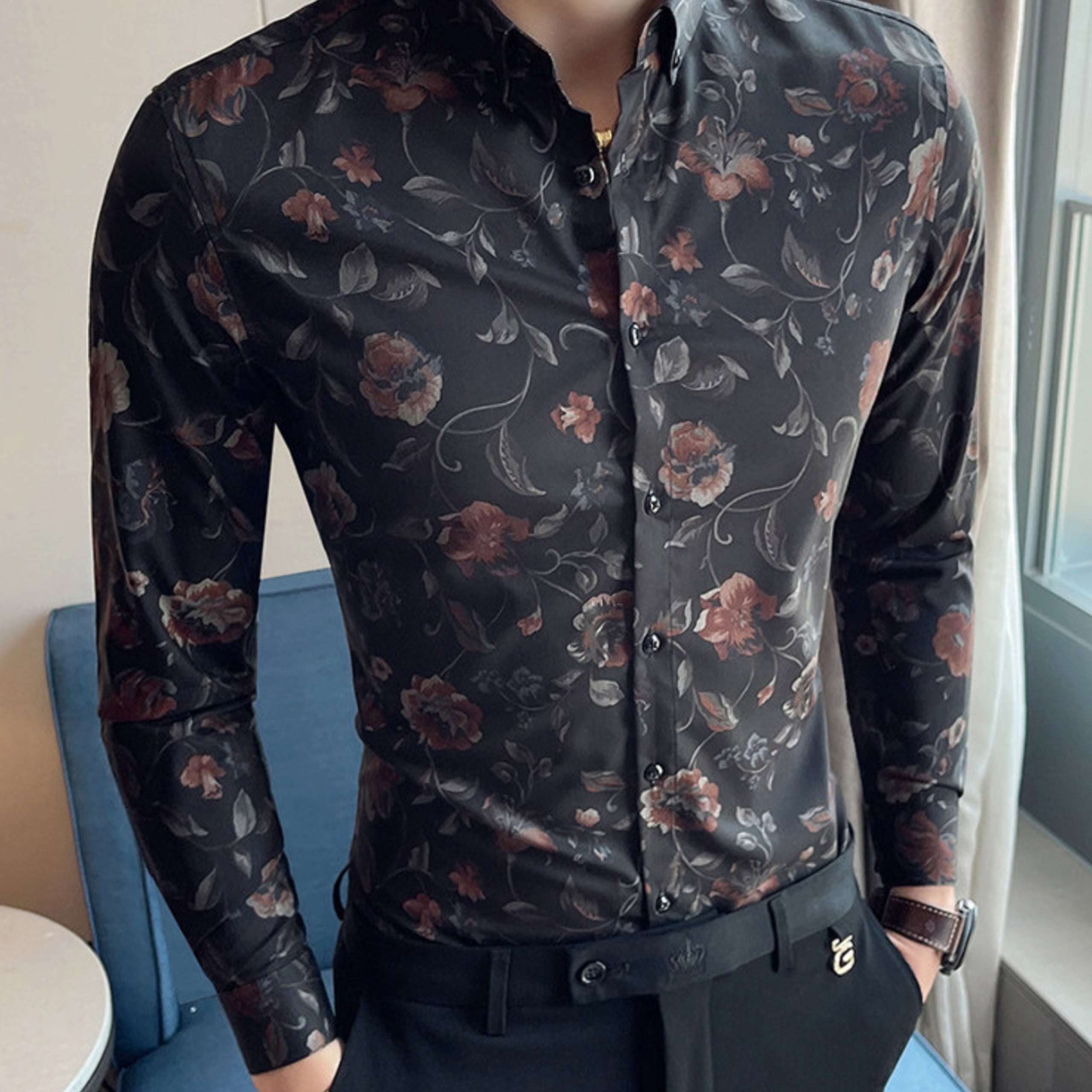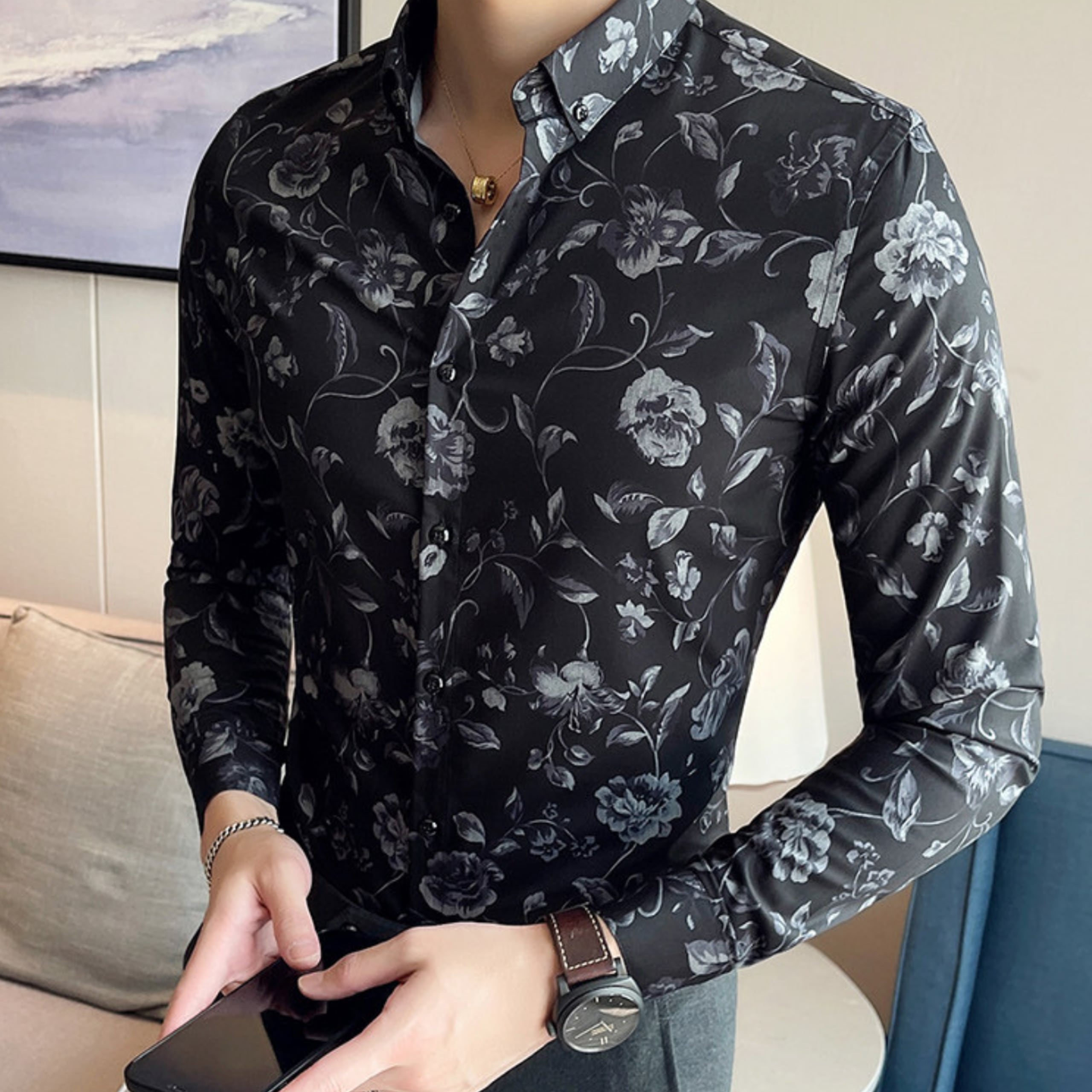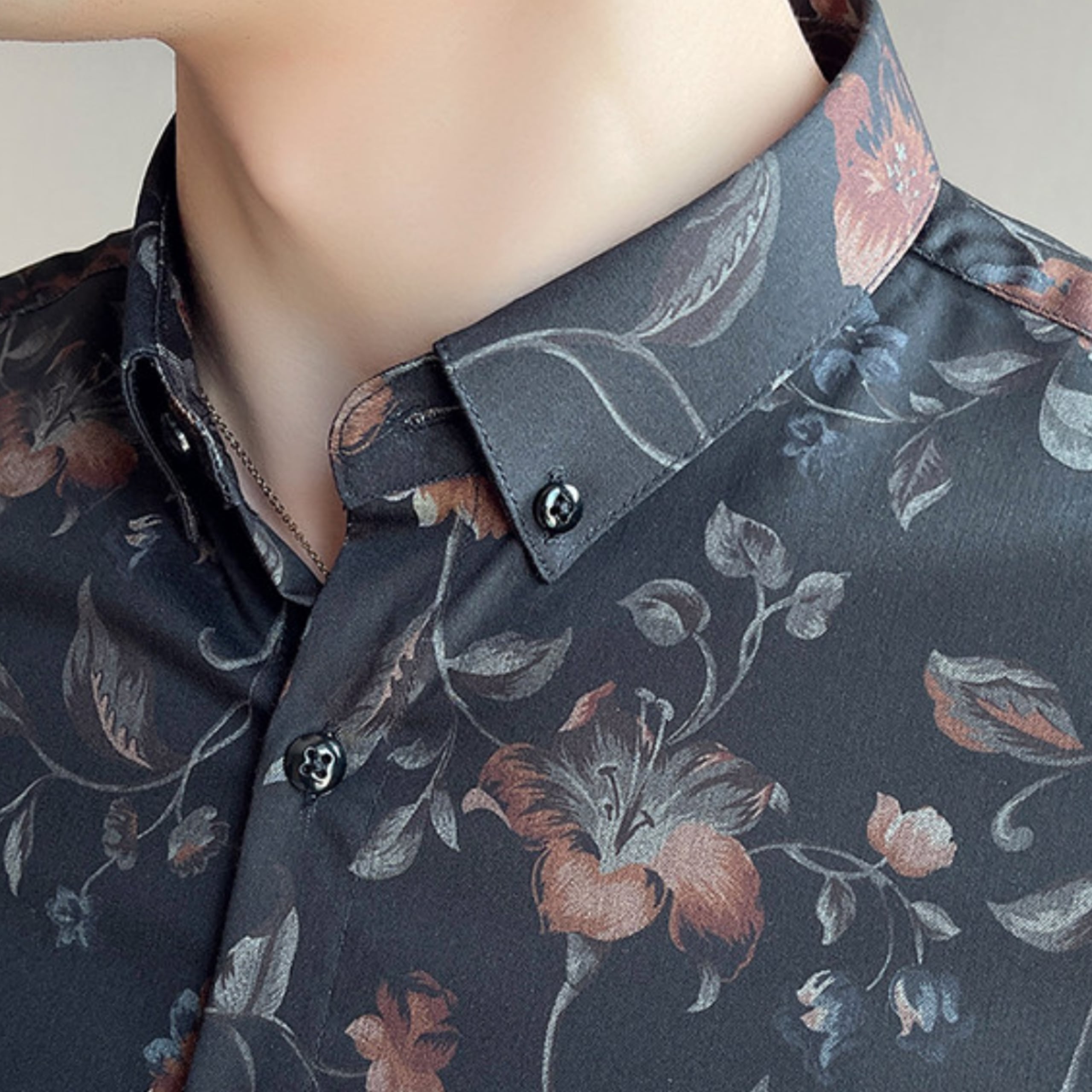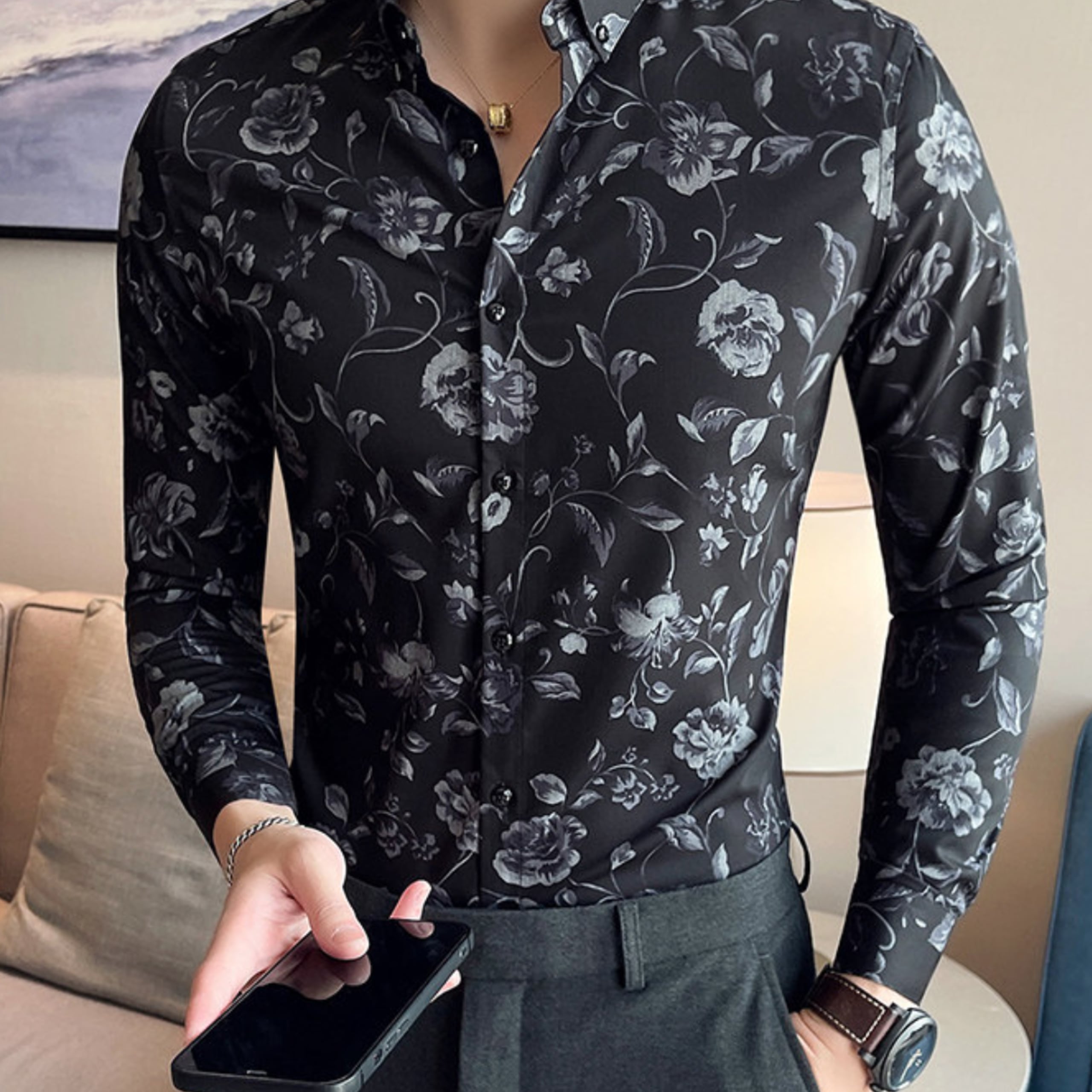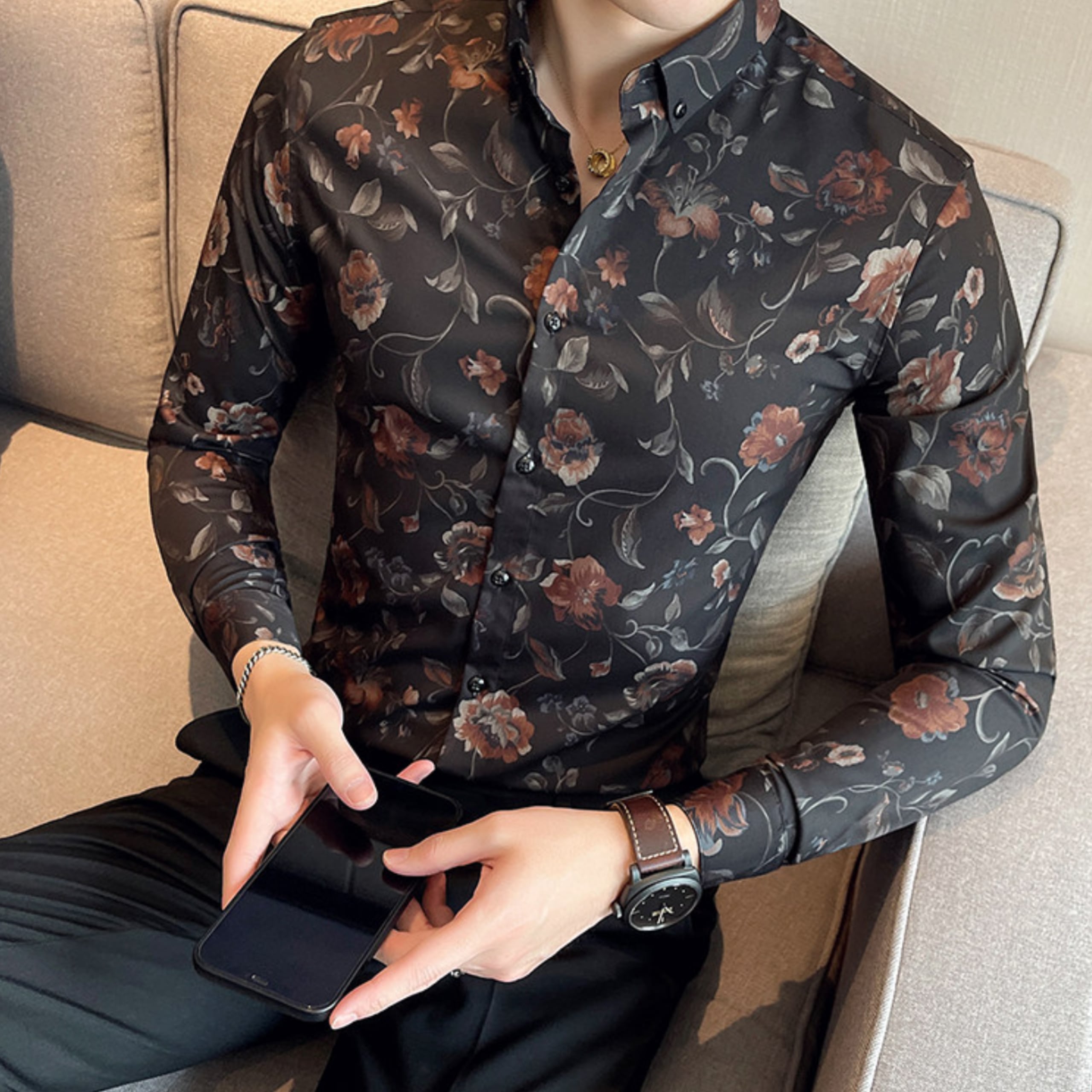 シックなフラワーパターンが印象的な、