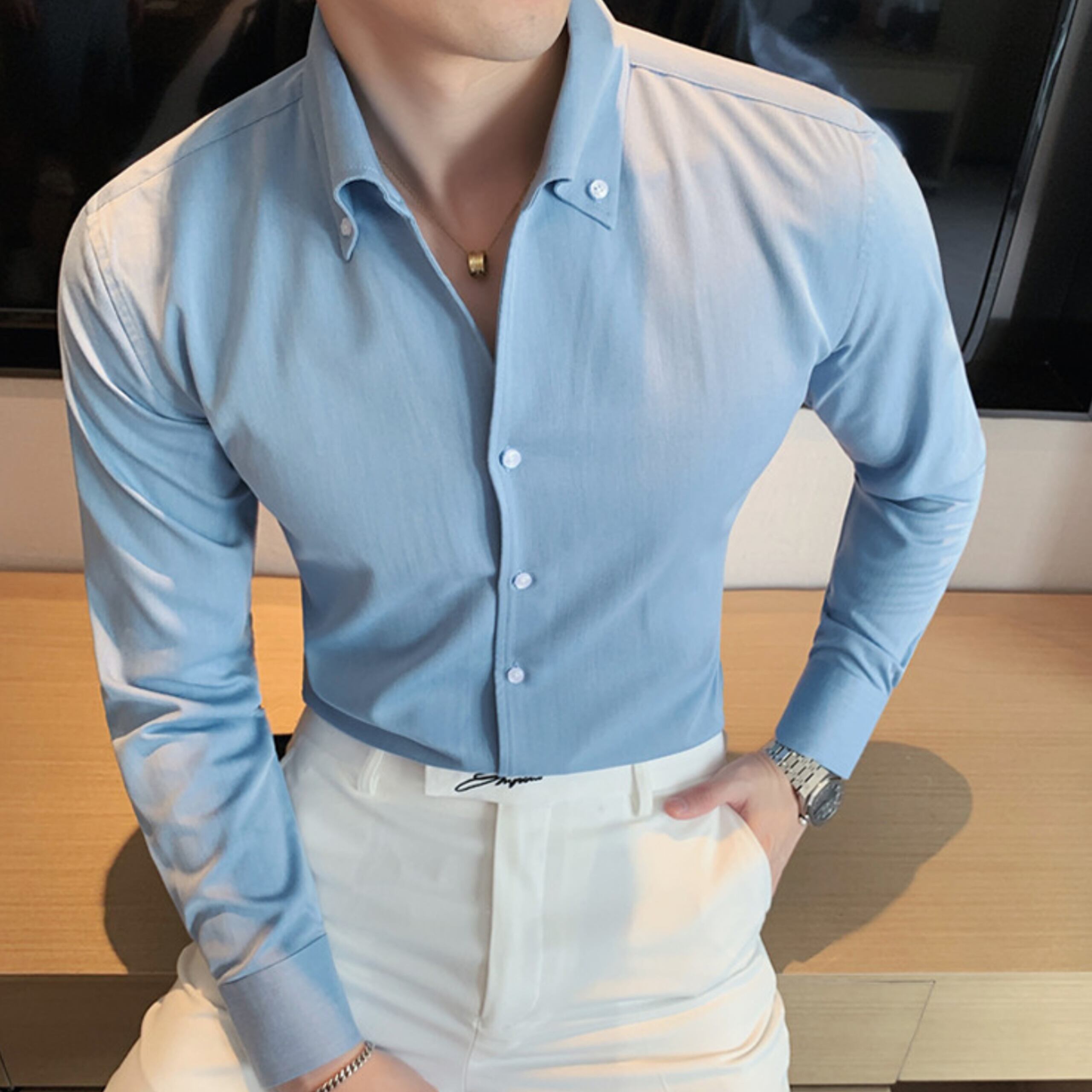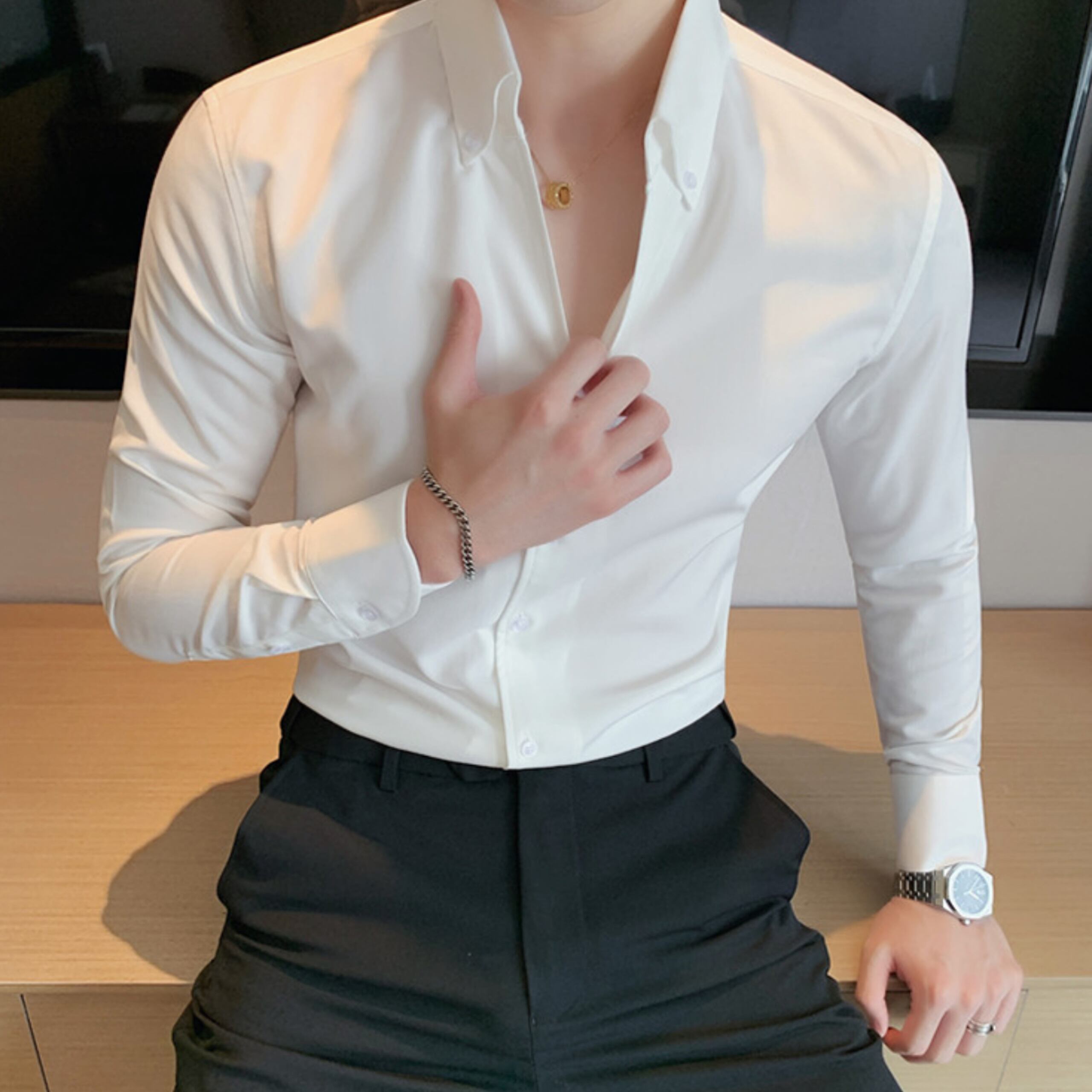 Vネックカラーシャツ(3color) M0712