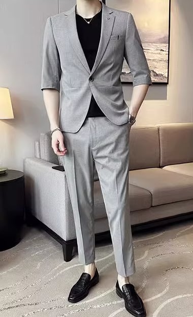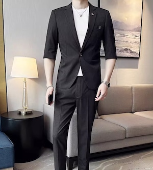 7分丈カジュアルスーツ ジャケットandパンツ(4color)M0203