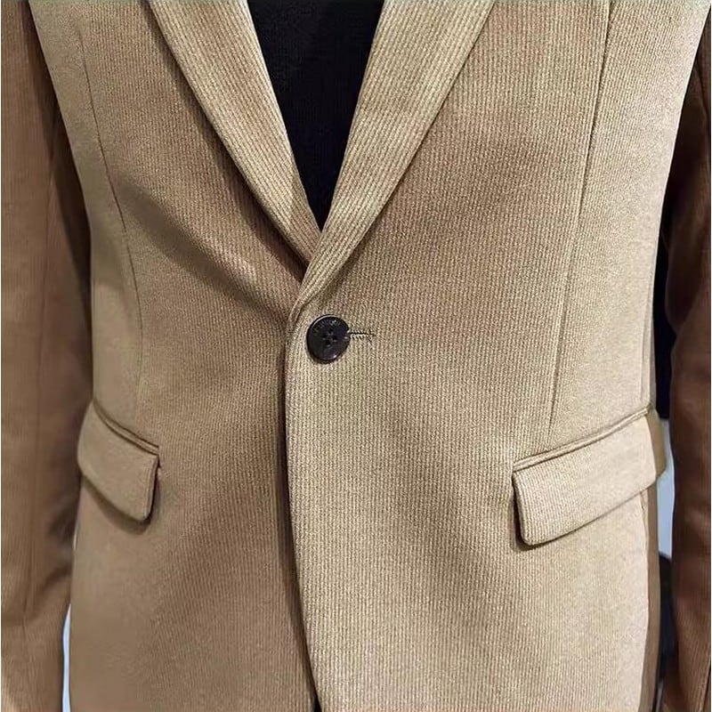 カジュアルシングルスーツスリムジャケット(2color)M0174は、洗練されたシルエットと抜群の着心地が魅力の一着です。ビジネスシーンからカジュアルまで幅広く対応可能なデザインで、何かと重宝すること間違いなし。シンプルながらも上品なルックスが、着る人のファッションセンスを格上げしてくれます。