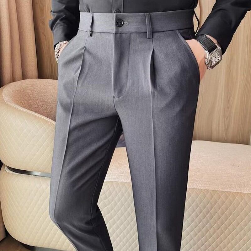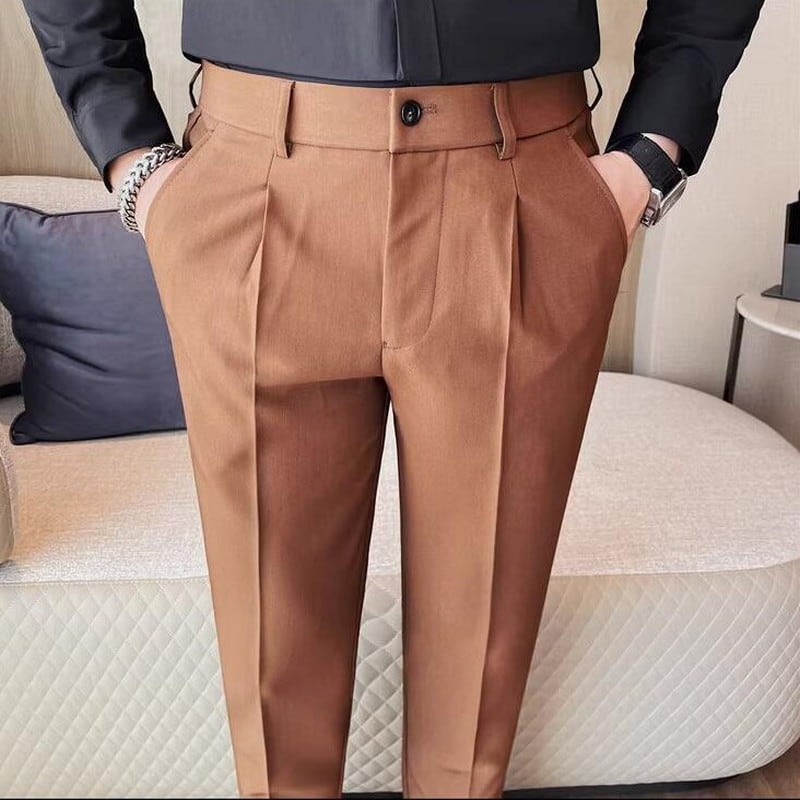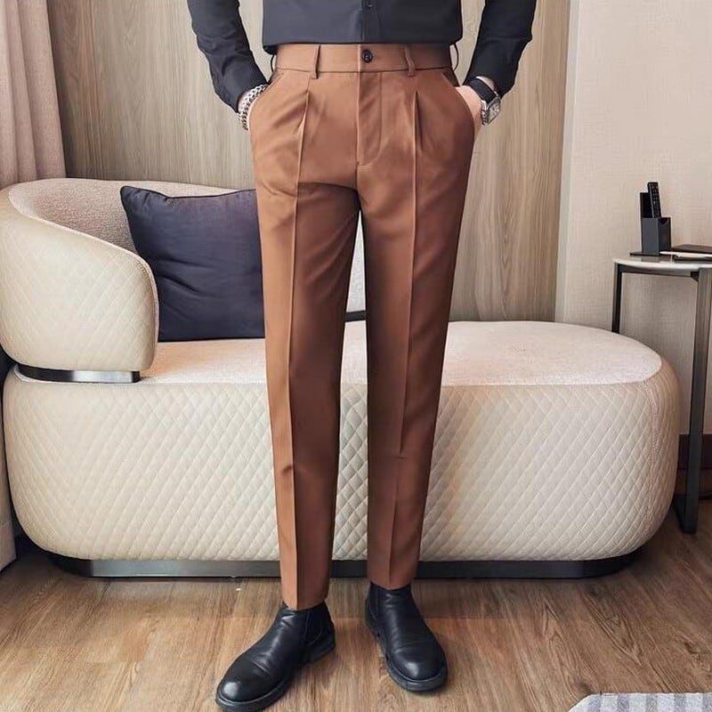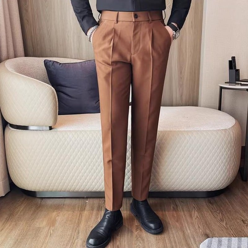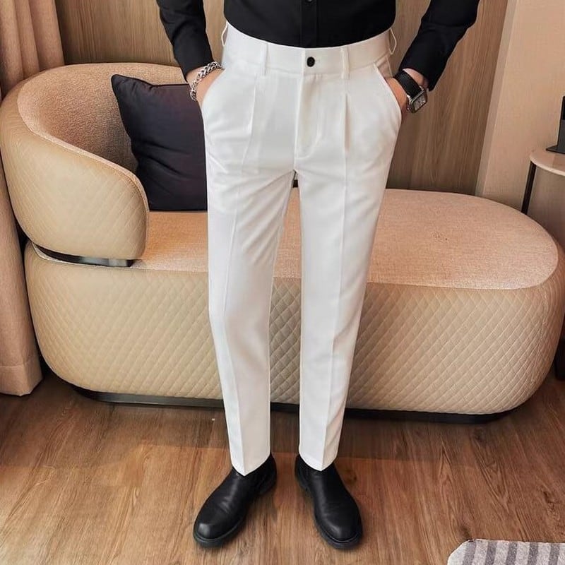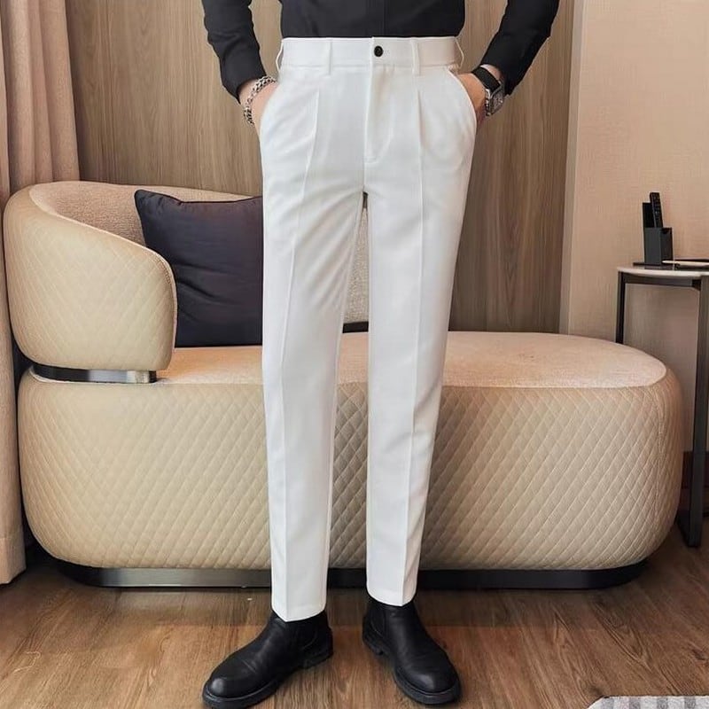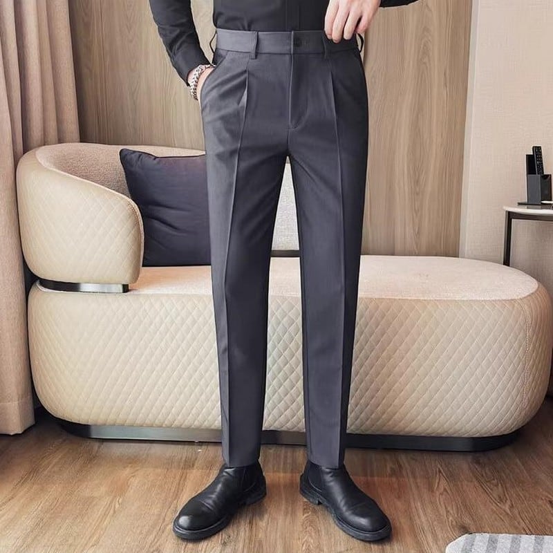 シンプルで飽きのこないスタイルに仕上げたカジュアルスーツパンツ。ビジネスシーンからカジュアルなお出かけまで幅広く活躍してくれるアイテムです。程よいタイトなシルエットが足元をすっきりと見せてくれます。