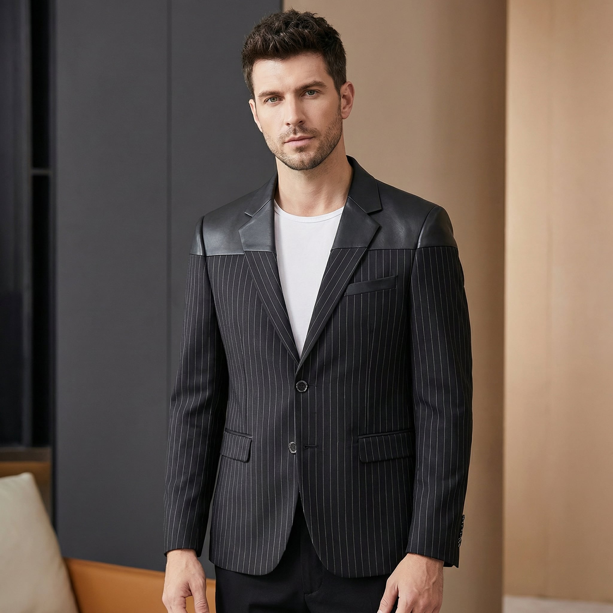 ハイエンドストライプジャケット(3color)M0272は、洗練された大人の男性にぴったりの一着です。シックなストライプ柄が上品さを演出し、3種類のカラーバリエーションから好みの色を選ぶことができます。すっきりとしたシルエットで、ビジネスシーンからカジュアルな場面まで幅広く対応するジャケットです。