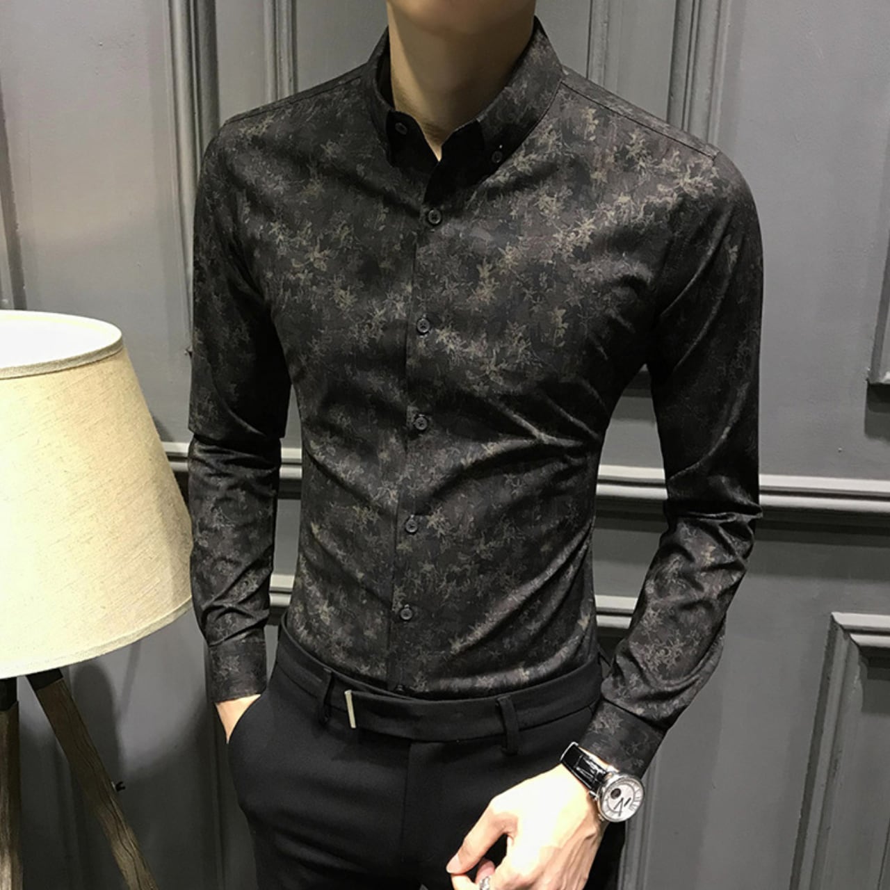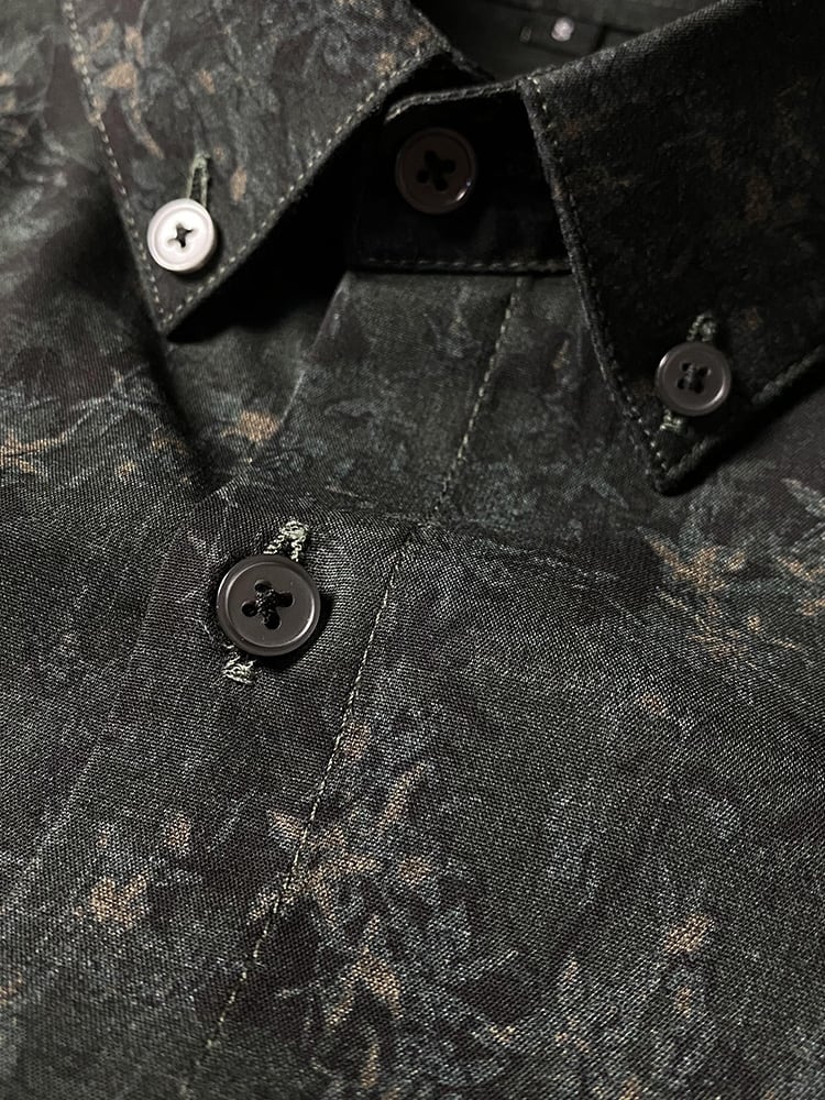 華やかな花柄が施されたスリムなシャツ。2色展開で着こなしの幅が広がります‼
