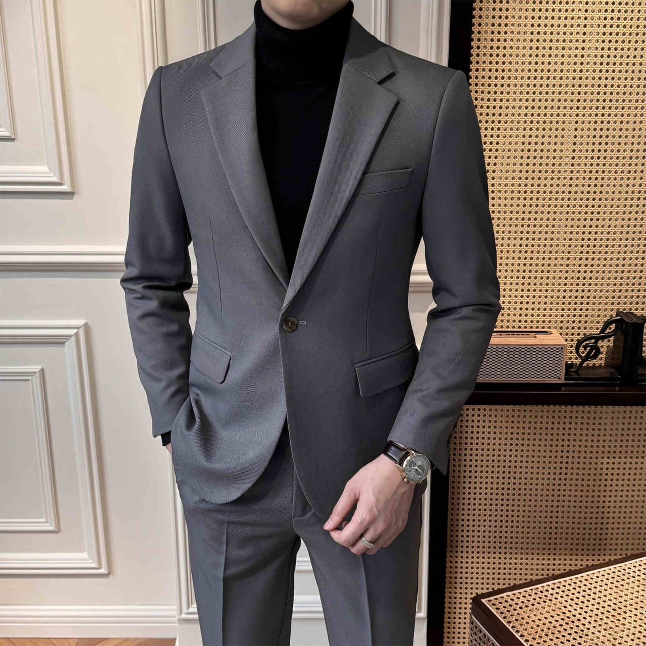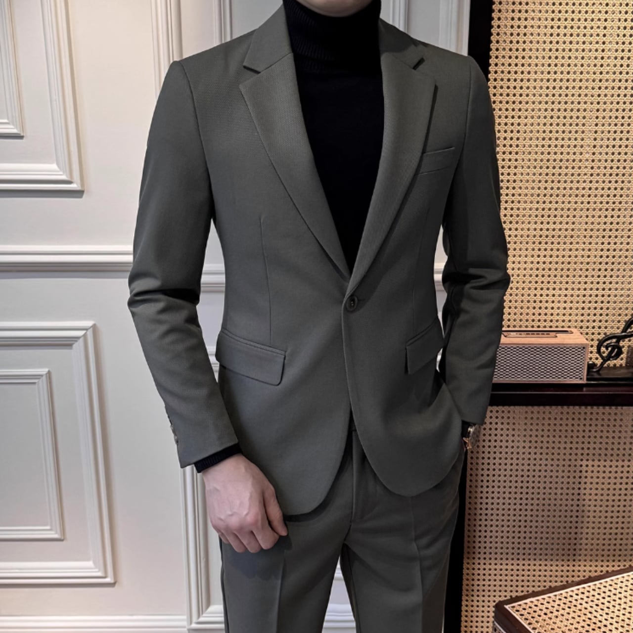ビジネススーツ ジャケットandパンツ2点セット(4color) M0329が新登場!多様なビジネスシーンに最適なこのセットは、高級感と機能性を兼ね備えています。選べる4色展開から、自分のスタイルにぴったりなカラーを見つけてください。