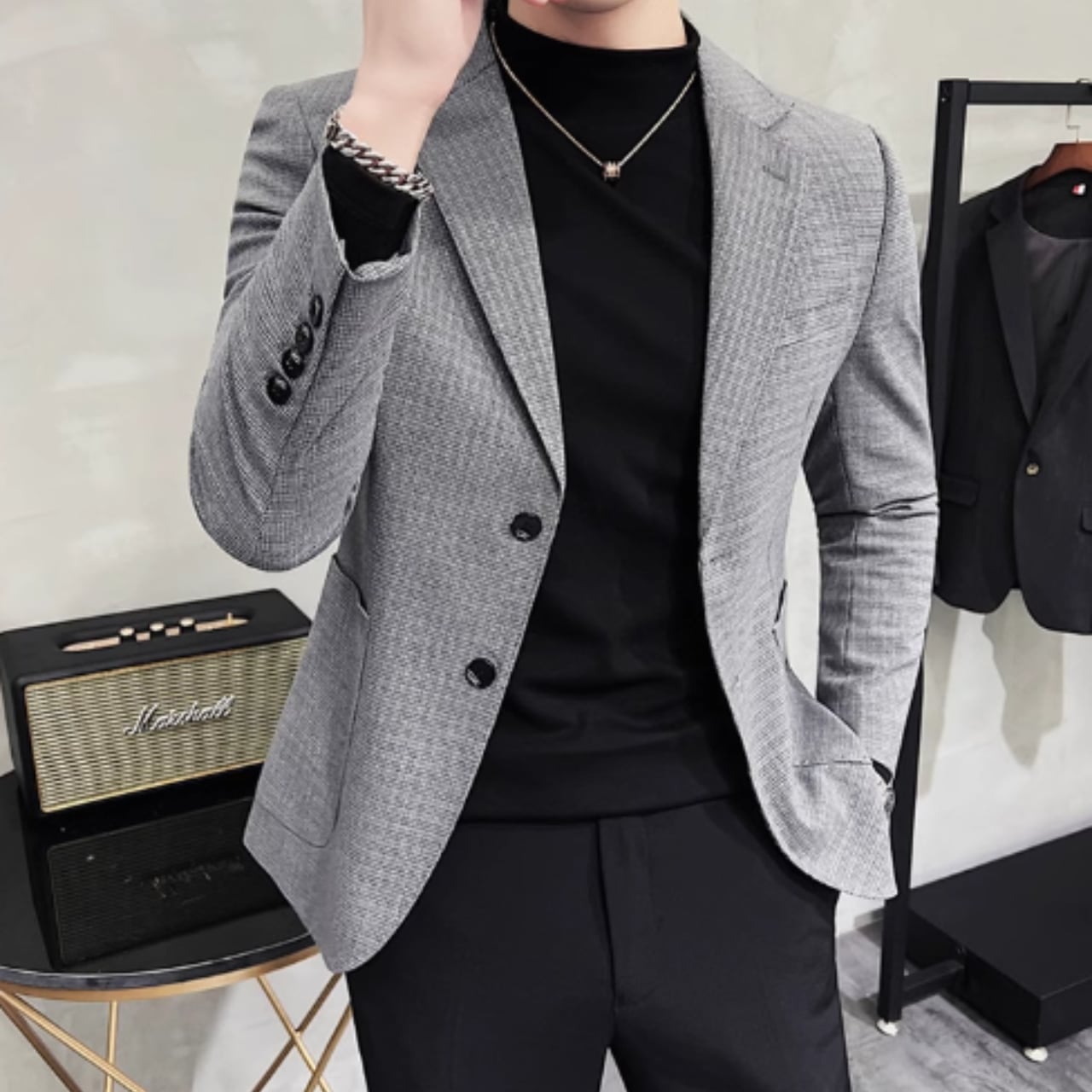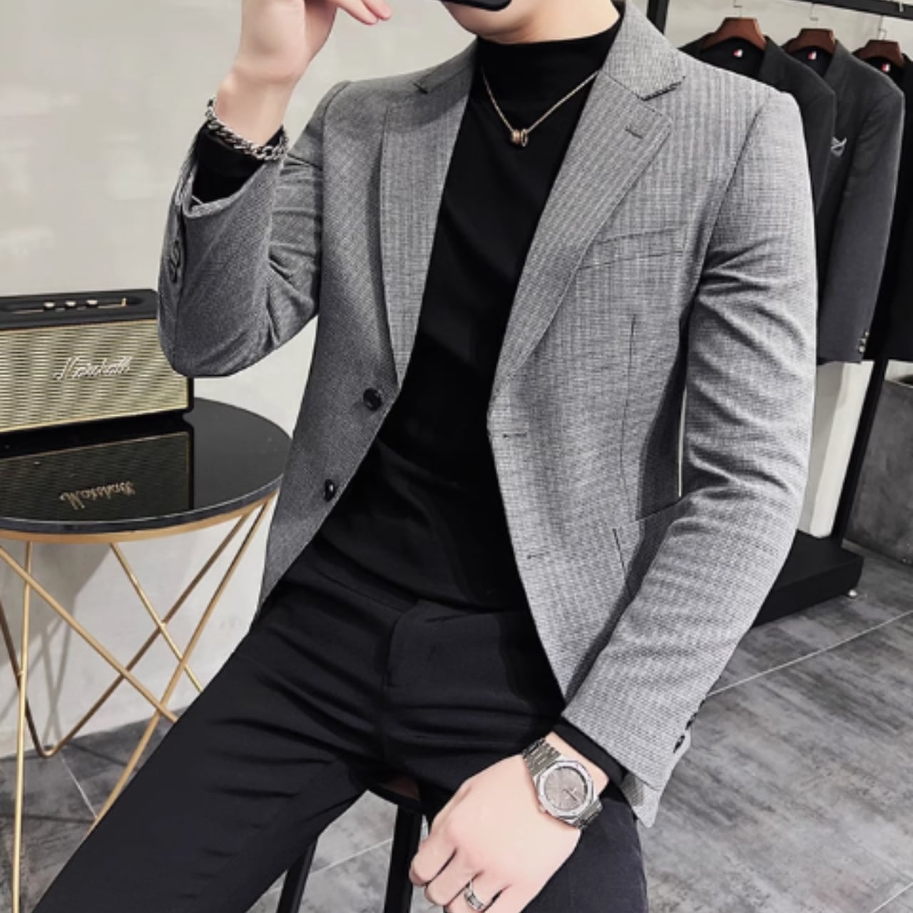洗練されたチェック柄が魅力のシングルブレザー。スタイリッシュなストレートシルエットで、様々なシーンに活躍します。普段使いからビジネスシーンまで幅広く対応できる、着回し力の高い一着です。