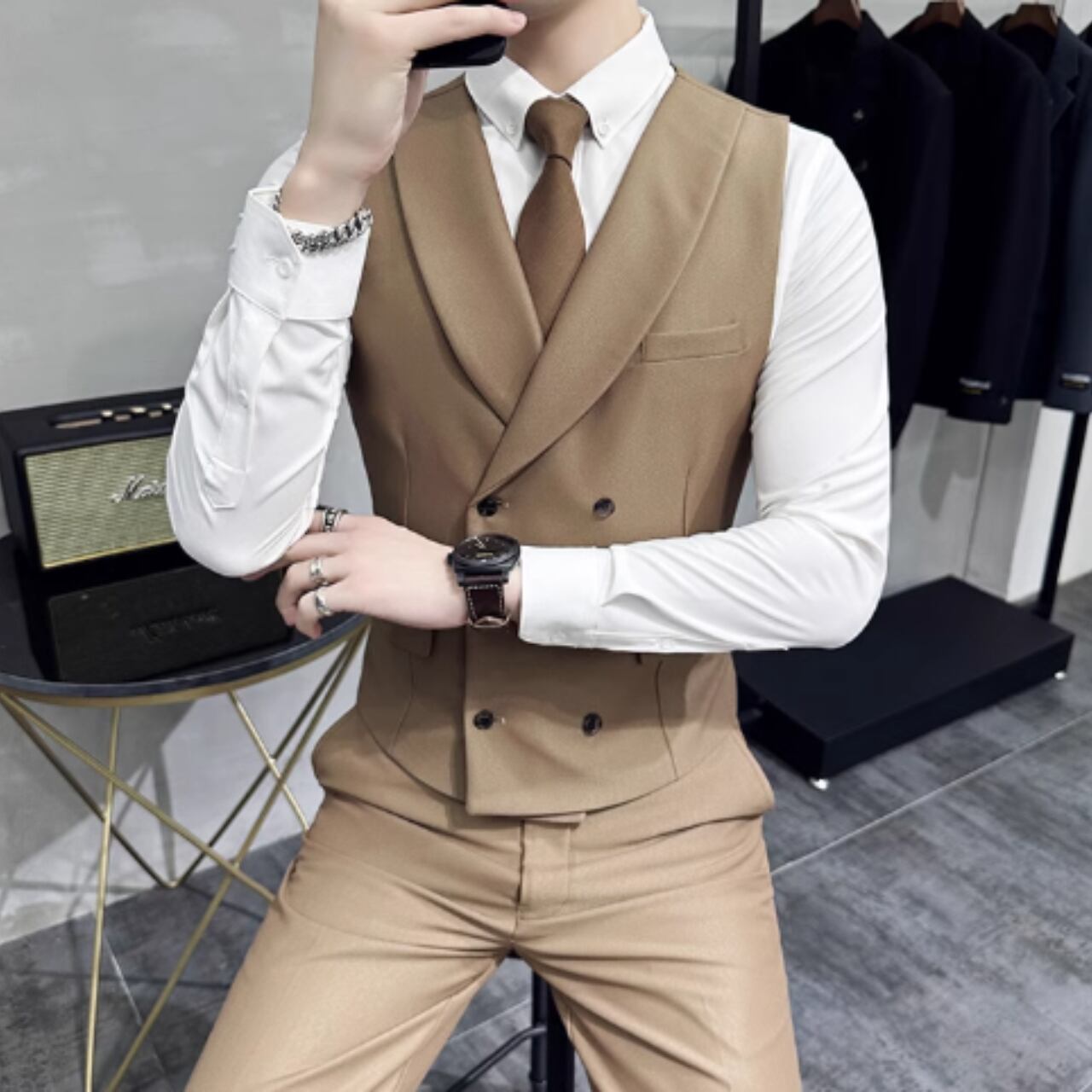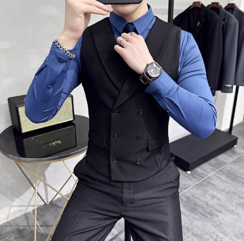 ダブルブレストノッチドラペルベスト (4color) M0618