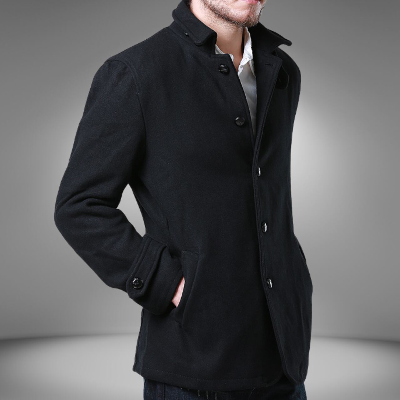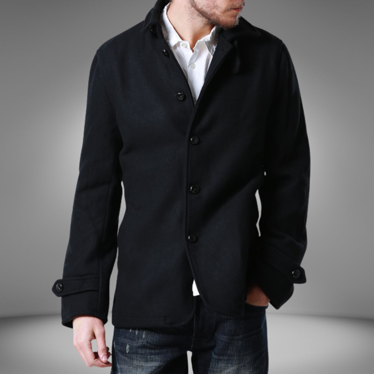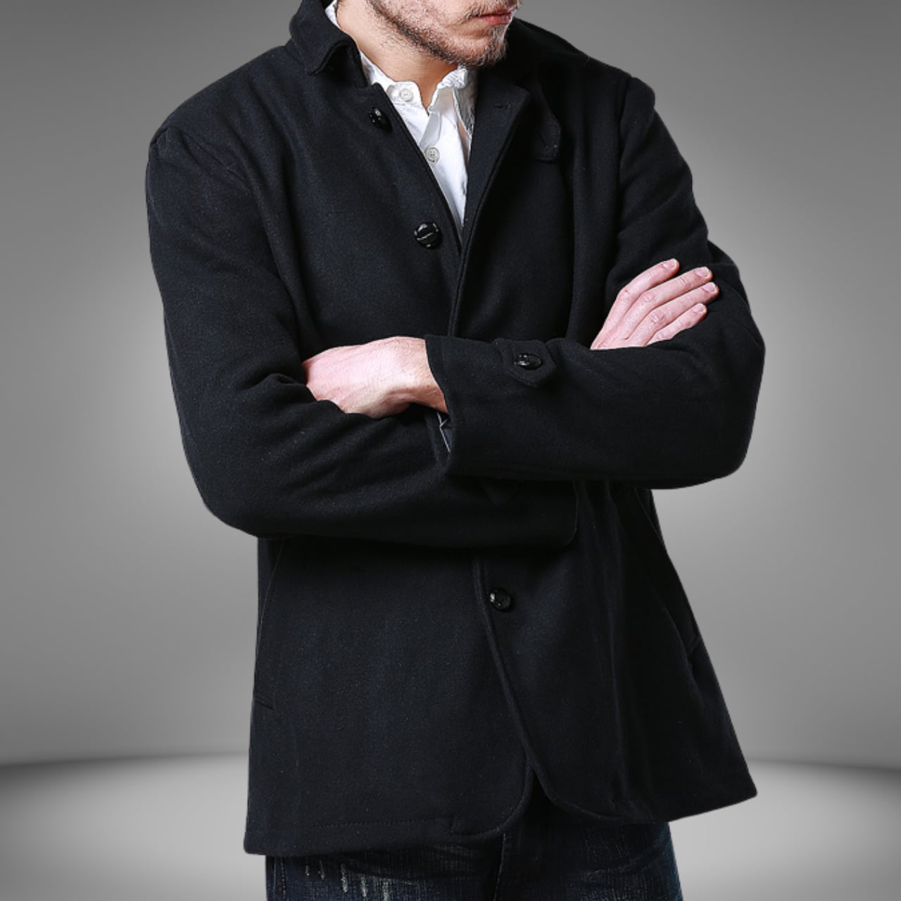 ブラックシングルブレストショートコート M0634